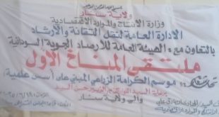 سنجه /مشاعر عيسى علي شرف ختام ملتقي المناخ الاول الذ ي نظمتة إدارة نقل التقانة والإرشاد بوزارة الإنتاج والموارد الاقتصادية ولاية سنار بالتعاون مع الهيئة العامة للارصاد الجوية السودانية تحت شعار موسم الكرامة الزراعي المبني علي أسس علمية برعاية اللواء ركن الزبير حسن والي ولاية سنار ، أوضح الباشمهندس الصادق …