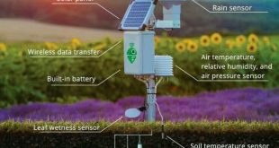 تقوم محطة الطقس الزراعية الذكية هذه بمراقبة الظروف البيئية والتربة من خلال حساسات لقياس سرعة الرياح، الإشعاع الشمسي، كمية الأمطار، درجة حرارة الهواء، الرطوبة، الضغط الجوي، رطوبة الأوراق، رطوبة التربة، ودرجة حرارتها. تعمل بالطاقة الشمسية، وتحتوي على بطارية مدمجة، وتنقل البيانات لاسلكيًا لإدارة المزرعة في الوقت الفعلي.