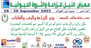 الدامر ايكوسودان نت أعلنت شركة اكسبو تيم للخدمات المحدودة المتخصصة في تنظيم المعارض اكتمال الاستعدادات لإنطلاقة فعاليات معرض النيل للزراعة والثروة الحيوانية الدورة الثانية المقام بمدينة الدامر حاضرة ولا نهر النيل برعاية كريمة من معالي السيد / وزير الزراعة والري والغابات – ولاية نهر النيل في الفترة من 30-28 سبتمبر 2025 …