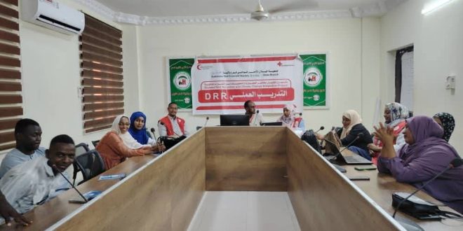 نظم مشروع تقليل مخاطر الكوارث والتكيف مع التغيرات المناخية بجمعية الهلال الأحمر السوداني فرع ولاية نهر النيل، ورشة التدريب العملي للمشروع بمشاركة 15 متطوع ومتطوعة من محليتي بربر وأبو حمد.