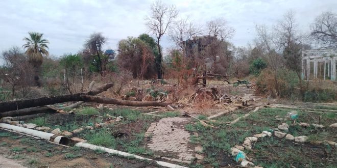 الحديقة النباتية القومية تتبع للادارة العامةللإنتاج البستاني/ وزارة الزراعة والري، تعرضت لدمار كامل من مليشيا الدعم السريع المتمردة . فالأشجار المعمّرة جرّدت من أوراقها، وتم حرقها وقطعها والممرات التي كانت تتفيّأ بظلال النباتات تحوّلت إلى تراب يابس اصبحت غابة خالية من اي أشجار مثمرة