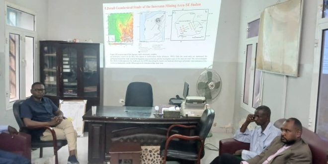 قدّم مكتب الدمازين الإقليمي عرضاً علمياً لمشروع رسالة الدكتوراه التي أعدّها الجيولوجي صلاح الشريف، بحضور نخبة من الجيولوجيين والخبراء من داخل الهيئة وخارجها. واستعرض العرض فصول ومضامين الرسالة التي حصل الشريف على أساسها على درجة الدكتوراه من جامعة ووهان الصينية لعام 2025 في تخصص الجيوفيزياء، باختيار منطقة جبال الأنقسنا كنموذج جغرافي للدراسة.