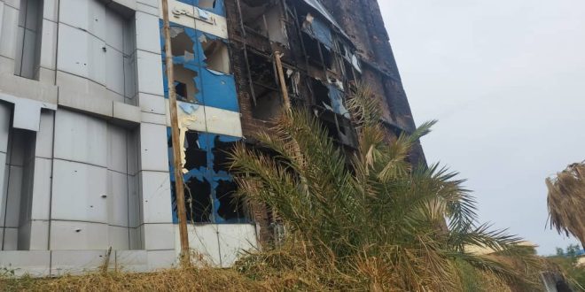 وكشفت الزيارة عن دمار في البني التحتية للمكاتب والمعمل بسبب التدوين والحرائق التي طالت جسم المبني الخارجي بحيث هنالك دمار في المبنى والمكاتب.