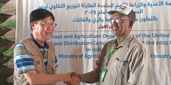 د. منى احمد عبدالله منسق الفاو بالولايه قالت إن الفاو وفرت 120طن من تقاوي الذره تتميز بمواصفات عاليه لخريف الولايه المبكر وهي الاصناف المحليه التي يرغبها المزارع (حميسي..وعبجارو) والتي يتم توزيعها على كافة محليات الولايه وتستهدف (12) الف مزارع بالولايه