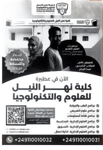 تعلن كلية نهر النيل للتكنولوجيا كاول كلية أهلية جامعيه