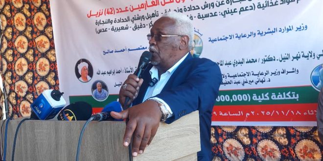 وزير تنمية الموارد البشريه الاتحادي قال ان مشروعات نفرة المصارف الكبرى للذكاه بنهر النيل تعتبر نموزج تفردت به ولاية نهر النيل والذي يجى تحت شعار (عطاء بلا من ولا اذى) وابدى سعادته بهذه المشروعات الحقيقيه التي تحقق نقله اقتصاديه كبيره للمستهدفين من الشرائح الضعيفه وقال إن هذا العمل الكبير يتماشى مع أهداف حكومة الأمل التي يقودها رئيس مجلس الوزراء د. كامل ادريس والتي تهتم بالشرائح الضعيفه ومعاش الناس