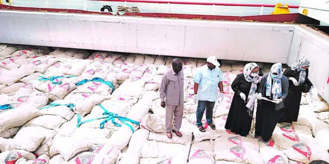 ودشنت الإدارة العامة لوقاية النباتات بوزارة الزراعة والري الاتحادية عمليات إنزال وتقفيف شحنة التقاوي بالميناء، إيذانًا ببدء توزيعها على المشاريع الزراعية المستهدفة في مختلف الولايات لتعزيز الإنتاج وزيادة رقعة المزروعات خلال الموسم الشتوي.