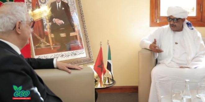 جاء ذلك خلال لقائه وزير التجهيز والماء المغربي نزار بركة، على هامش أعمال الدورة الـ19 للمؤتمر العالمي للمياه المنعقد في مراكش، بحضور السفيرة مودة عمر حاج التوم.