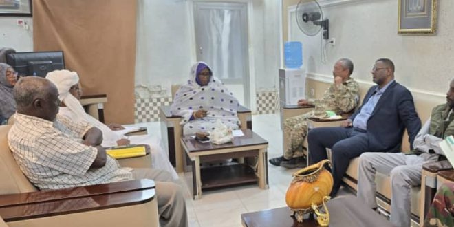 وأكدت لدى لقاءها بمكتبها ظهر اليوم وفد مكتب المقاومه الشعبيه بالولاية برئاسة اللواء م الصادق خالد بشير رئيس المقاومه بالولاية اكدت على مسؤليتهم الوطنية تجاه قضايا امن وإستقرار الولاية والبلاد بصفة عامة معلنة دعمها لبرامجهم وفقا لإمكانياتهم المتاحه إعتبارا للأدوار الرساليه للمقاومه فى الحرب والسلم .