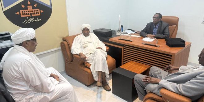 عقد مدير جامعة الخرطوم بروفيسور عماد الدين الأمين الطاهر عرديب إجتماعًا مساء يوم السبت الموافق ١٤/٠٣/٢٠٢٦م بمركز جامعة الخرطوم بالقاهرة مع المدير العام للمنظمة العربية للتنمية الزراعية بروفيسور إبراهيم الدخيري وذلك بحضور وزير الزراعة والري دكتور عصمت قرشي والبروفيسور عمر محمد توم الأستاذ بكلية الزراعة ورئيس مجلس إدارة كلية دار العلوم والتكنولوجيا. حيث ناقش الإجتماع خطط التعاون المشترك بين الجامعة والمنظمة فيما يخص مشروعات الإعمار في الجامعة خاصة في المجالات المرتبطة بالتدريب في الكليات ذات الصلة. كما ناقش الاجتماع إمكانية الإستفادة من مركز جامعة الخرطوم بالقاهرة في استضافة الدورات التدريبية التي تشرف عليها المنظمة بالتنسيق مع عدد من الوزارات والمؤسسات الحكومية في السودان. في ختام الإجتماع تم الإتفاق علي إعداد وتوقيع مذكرة تفاهم بين المنظمة والجامعة وبرنامج عمل تنفيذي وخطة لإنفاذ الدورات التدريبية المشروعات البحثية التي يتم الإتفاق عليها بين الجانبين.