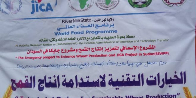 نظمت محطة بحوث الحديبة يوم حقل مشروع الإسعافي لتعزيز إنتاج القمح ومشروع جايكا بالسودان نفذ من قبل المنسق الفني للمشروع الإسعافي الباحثة سارة محمد الطيب محيسي