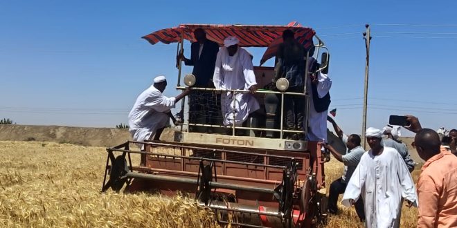 وقف المهندس صلاح الدين علي محمد أحمد وزير الزراعة والثروة الحيوانية المكلف بولاية نهر النيل صباح اليوم على عمليات الحصاد الجارية بمشروع جمعية الجول الزراعية بوحدة الباوقة الإدارية محلية بربر.