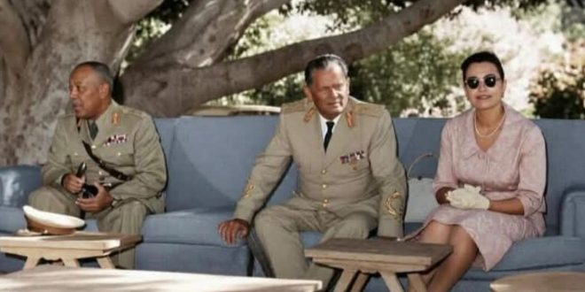 الفريق عبود مع المارشال جوزيف بروز تيتو رئيس جمهورية يوغسلافيا صاحب فكرة تأسيس حركة عدم الانحياز و زوجتة فى استراحة مدينة بركات الخضراء والتي تم تأسيسها كمدينة إدارية المشروع في العام 1914 .